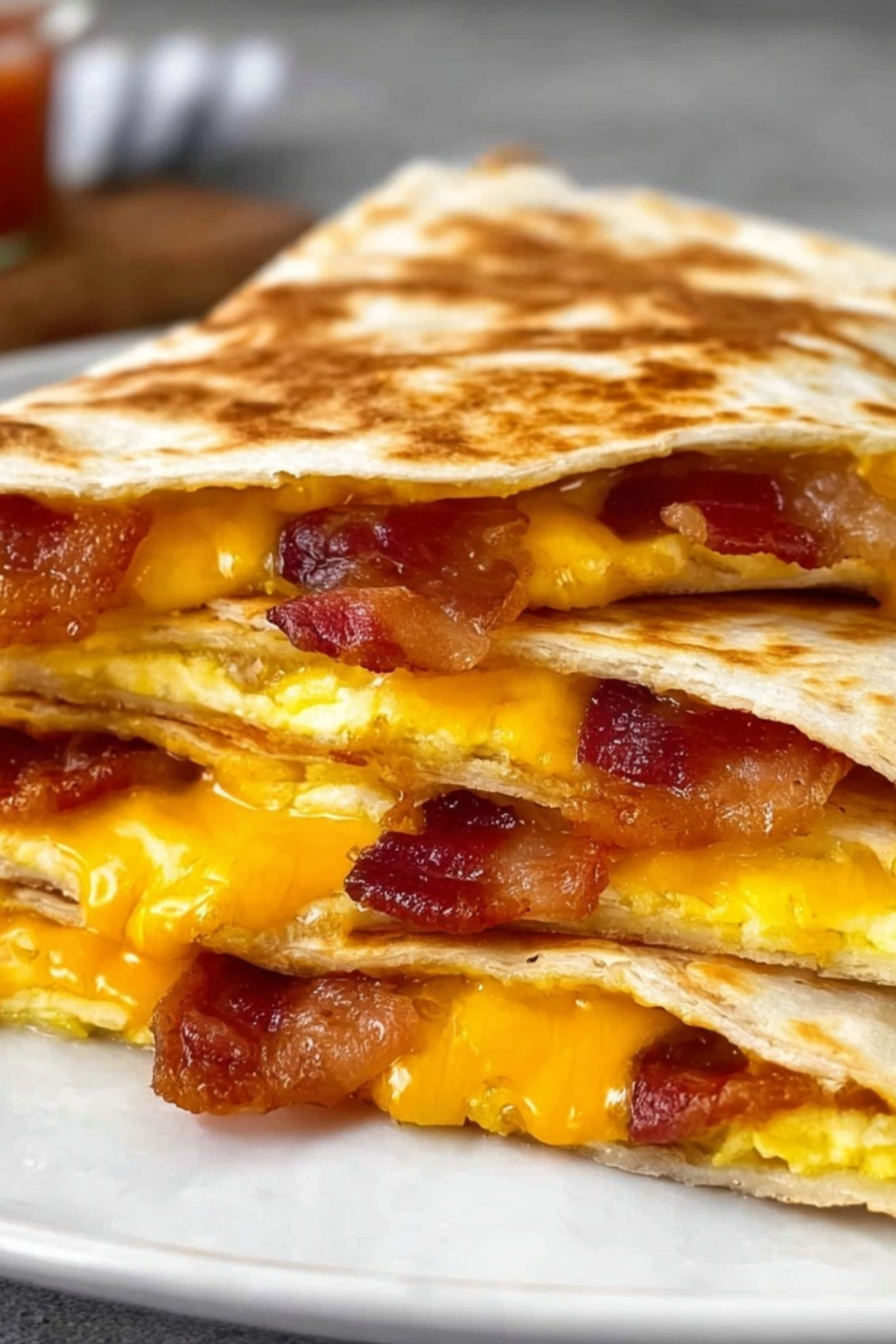 These Bacon Egg and Cheese Breakfast Quesadillas are a crispy, cheesy, and savory way to start your morning right. Freezer-friendly and crowd-pleasing.