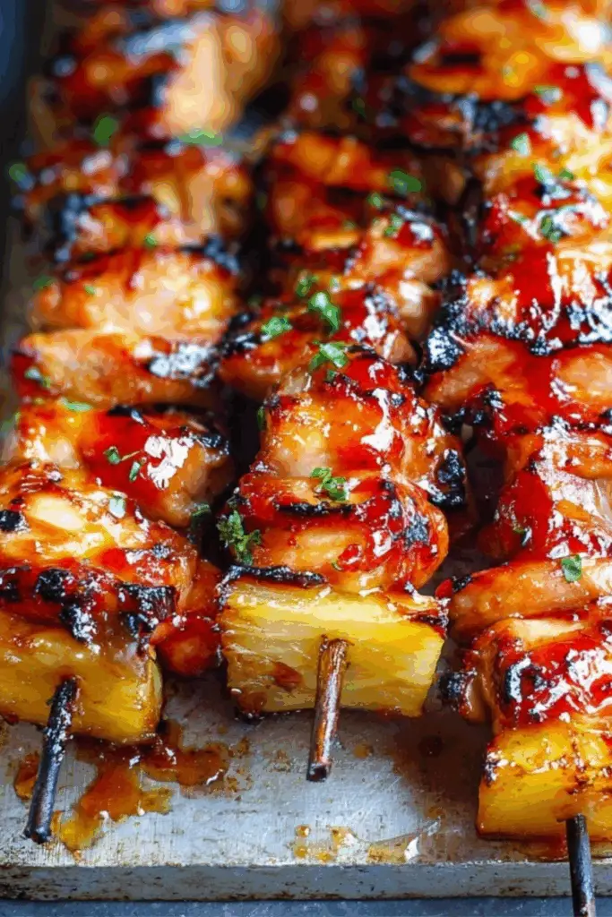 Juicy BBQ Pineapple Chicken Kabobs combine tender grilled chicken, sweet caramelized pineapple, and smoky barbecue glaze for the ultimate summer grilling recipe.