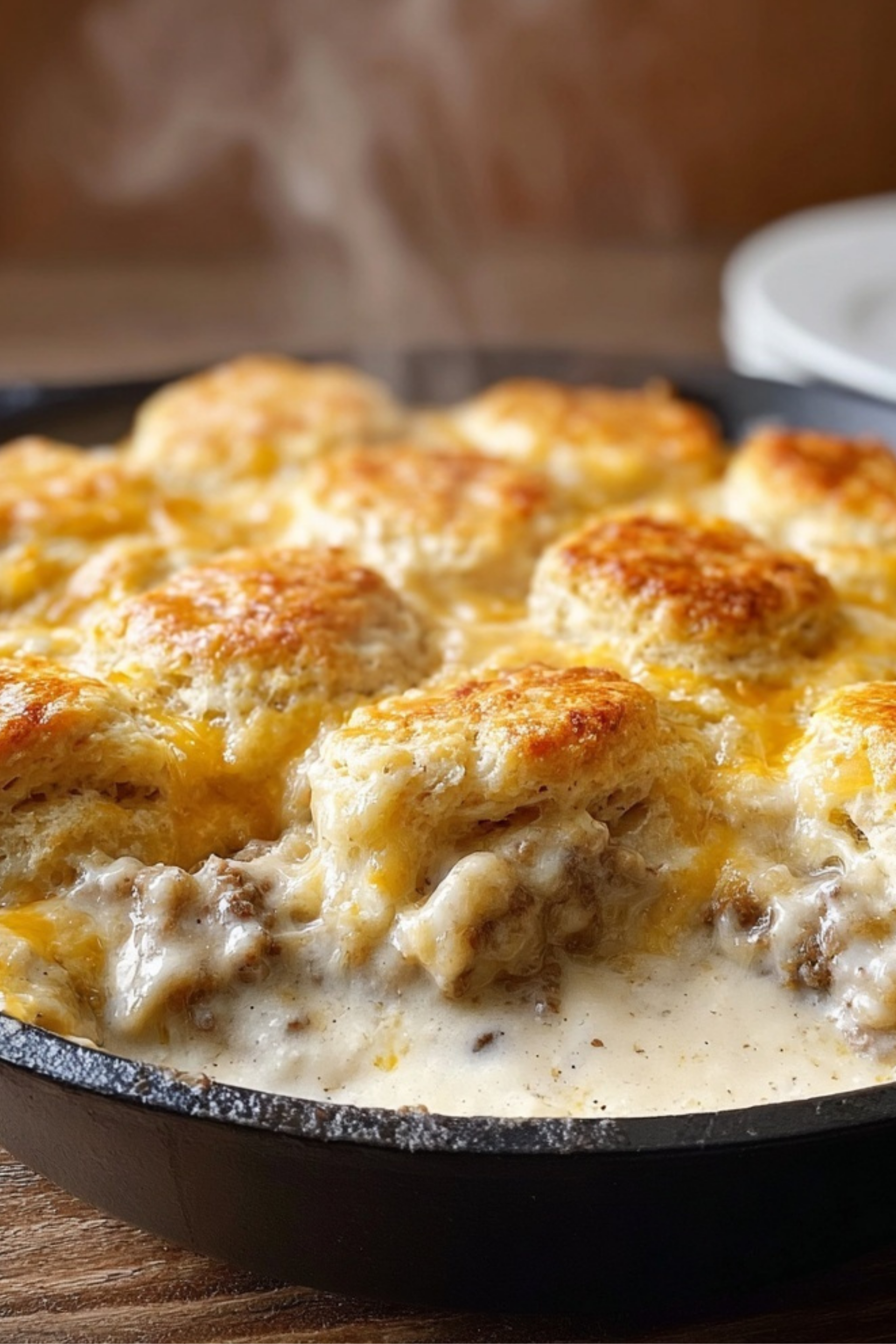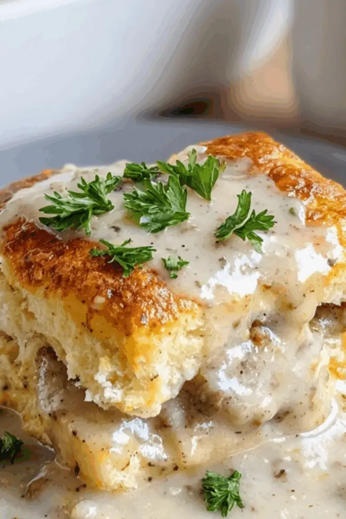 This Biscuit and Gravy Casserole combines flaky biscuits, creamy sausage gravy, and oven-baked comfort in one dish, perfect for breakfast or brunch.