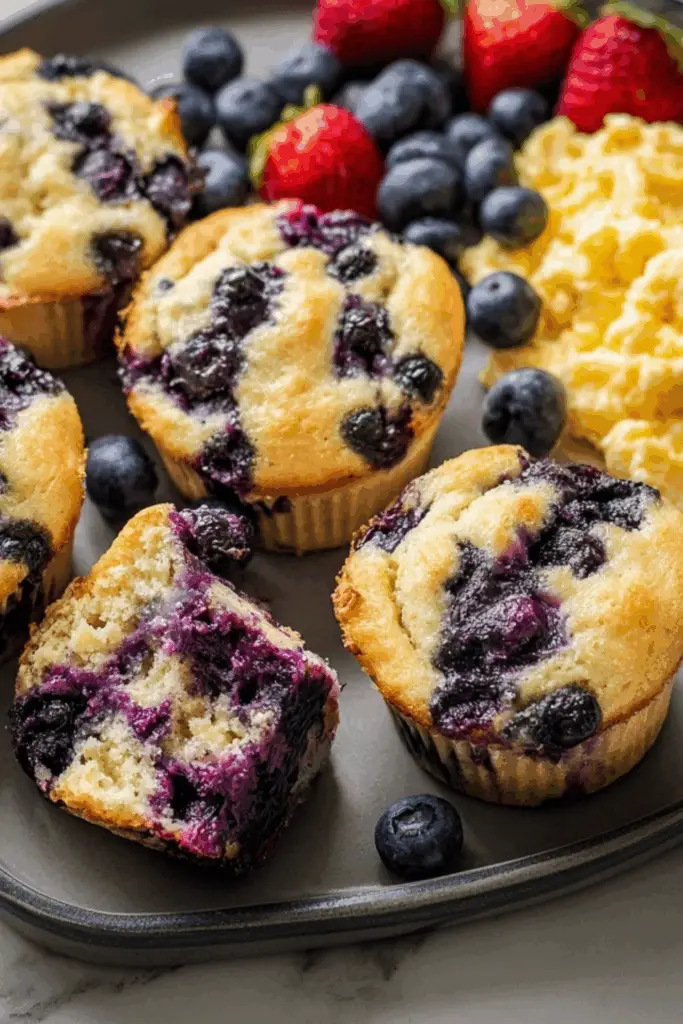 Unlike sugary pastries, Blueberry Protein Muffins combine sweetness with substance. By adding protein powder, Greek yogurt, or cottage cheese, these muffins help maintain stable energy levels. They’re perfect for athletes, busy parents, or anyone who needs a portable snack. I love pairing them with coffee on weekdays, but they’re equally great after a workout. Just like the Blueberry Cottage Cheese Breakfast Bake or Breakfast Butter Swim Biscuits, they make breakfast something to look forward to.