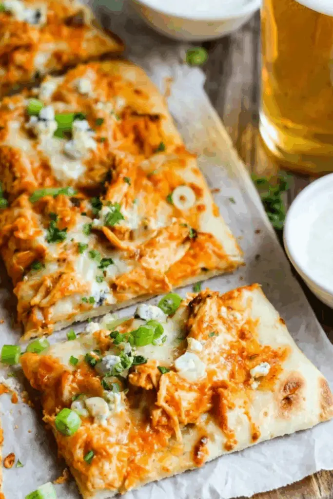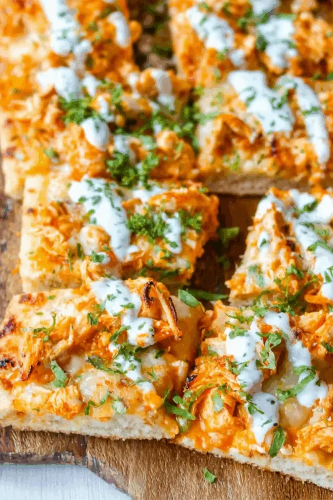 Buffalo Chicken Flatbread can be lightened up without losing flavor. Use a whole-wheat or cauliflower crust, go light on cheese, and top with extra vegetables. A drizzle of Greek yogurt ranch instead of traditional dressing makes it a little lighter but still tasty.