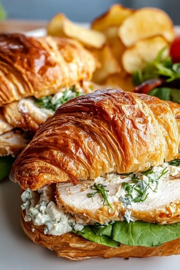 For a lighter version, swap croissants with whole wheat rolls. Or, for a heartier option, double the chicken and add roasted veggies. This makes the sandwich filling enough for dinner, comparable to enjoying Chicken Sausages with Zucchini and Tomatoes Pasta on a busy weeknight.