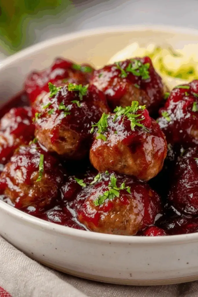 Christmas Cranberry Meatballs are juicy, sweet-and-savory bites coated in a festive cranberry glaze—perfect for holiday parties or cozy dinners.
