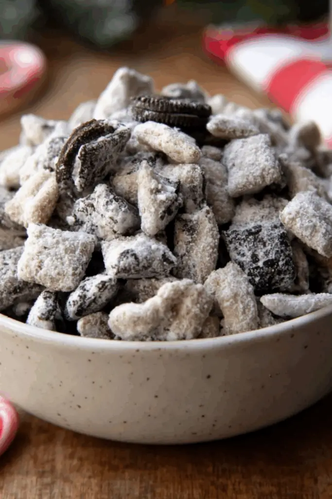 In fact, if you’re short on time around the holidays, pair it with treats like cheesy ranch Chex mix or salted caramel pretzel bars to create a snack board that everyone will rave about. Cookies and Cream Puppy Chow delivers big on flavor, fun, and function. And it’s gluten-free-friendly too, depending on the cereal and cookies you use.