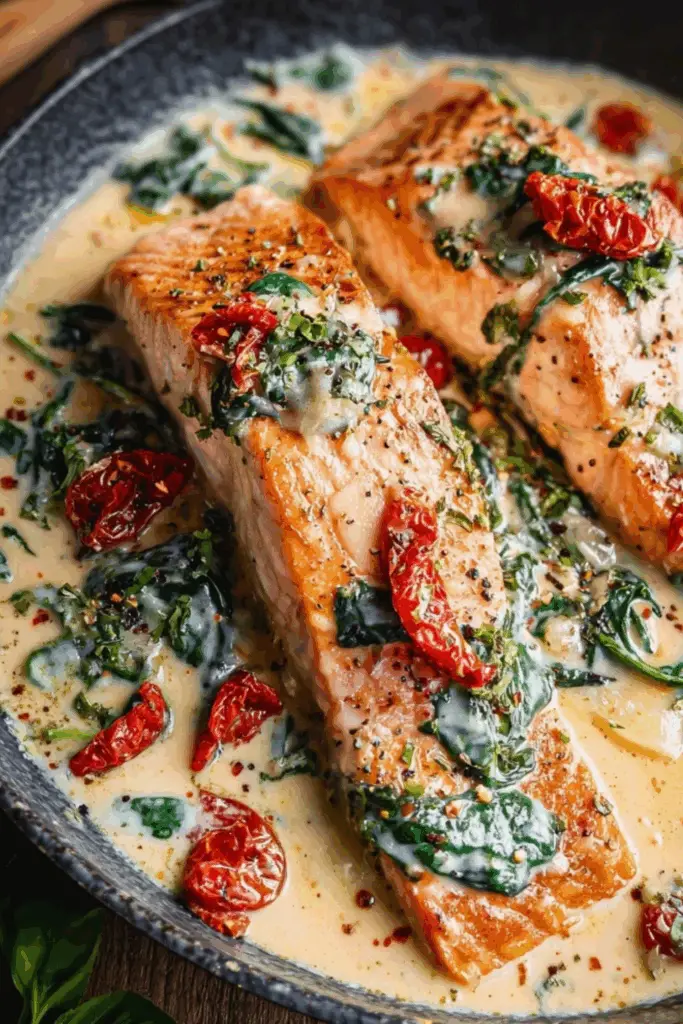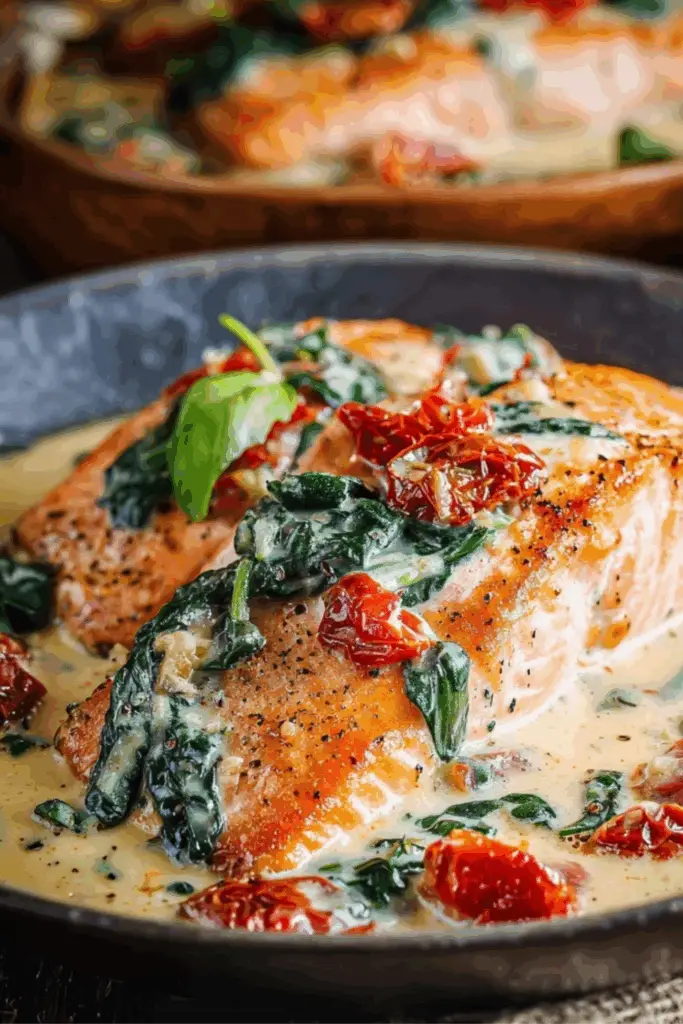 Creamy Tuscan Salmon is a rich, flavorful Italian-inspired dish featuring seared salmon fillets in a velvety cream sauce with spinach, sun-dried tomatoes, and garlic. Ready in 30 minutes, it’s perfect for weeknights or special occasions.