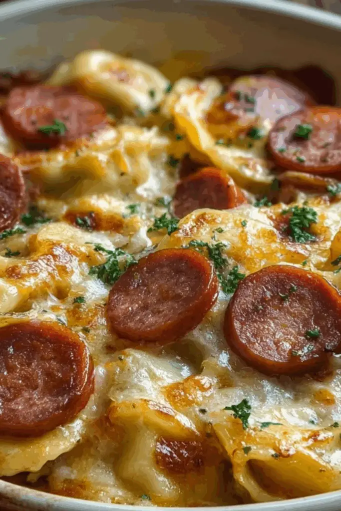 Crockpot Pierogi Casserole with Kielbasa is pure magic because of its irresistible flavor pairings. Smoky, garlicky kielbasa melts into tender, cheesy pierogies in a way that makes every bite feel like home. The beauty of this dish lies in how the ingredients meld together during slow cooking. The pierogies, often stuffed with potato and cheese, soak up the kielbasa’s juicy essence while staying perfectly soft.
