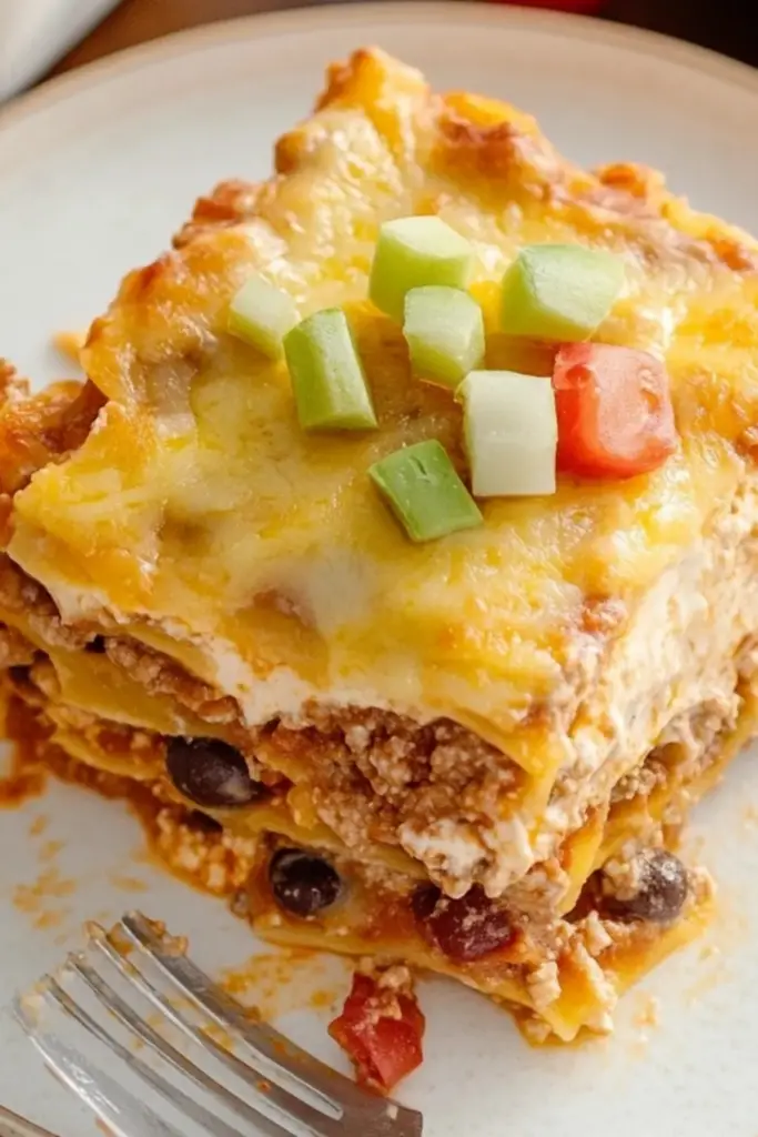 PrintDelicious Mexican Lasagna: A Beginner-Friendly Casserole