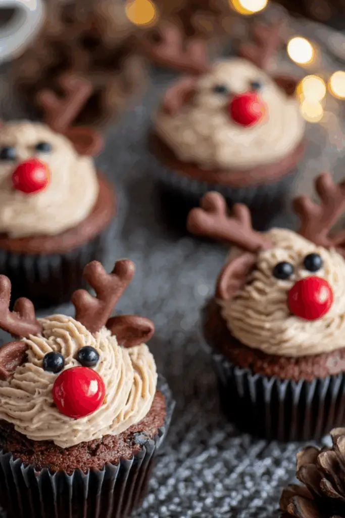 Serve your Easy Reindeer Cupcakes on a tiered dessert stand with a dusting of powdered sugar around the base for a “snowy” effect. Pair them with mugs of hot cocoa or peppermint lattes. They’re also adorable as edible gifts—simply box them in clear containers with a festive ribbon.