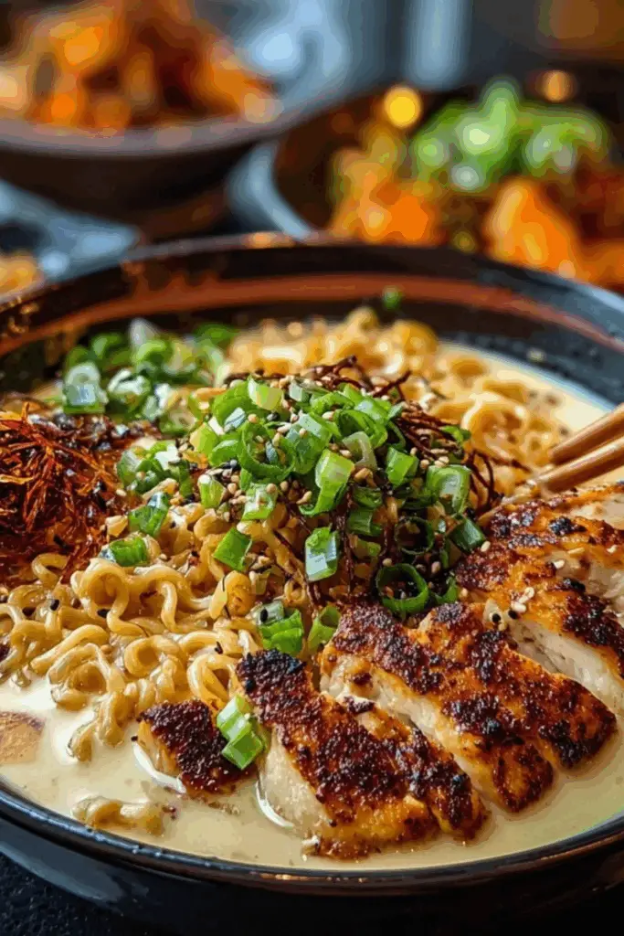 Fiery Chicken Ramen with Creamy Garlic Sauce isn’t just another noodle recipe—it’s a flavor-packed comfort dish that delivers on both heat and richness. From the marinated chicken to the silky sauce and customizable toppings, it’s a meal that can be as bold or as mild as you like. Whether you’re recreating the cozy nights when you first discovered it or serving it to impress friends, this dish always leaves a lasting impression.