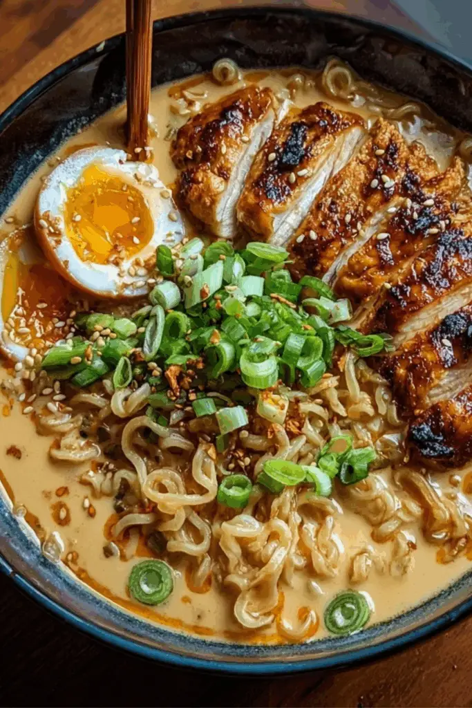 When you serve Fiery Chicken Ramen with Creamy Garlic Sauce, presentation matters almost as much as flavor. Use a deep bowl so the noodles nestle in the creamy broth, then top with sliced green onions, sesame seeds, and a halved soft-boiled egg. The golden yolk oozing into the sauce adds another layer of richness. This attention to visual detail is something I picked up from plating dishes like Grilled Mexican Lime Chicken, where vibrant colors make the meal instantly more inviting.
