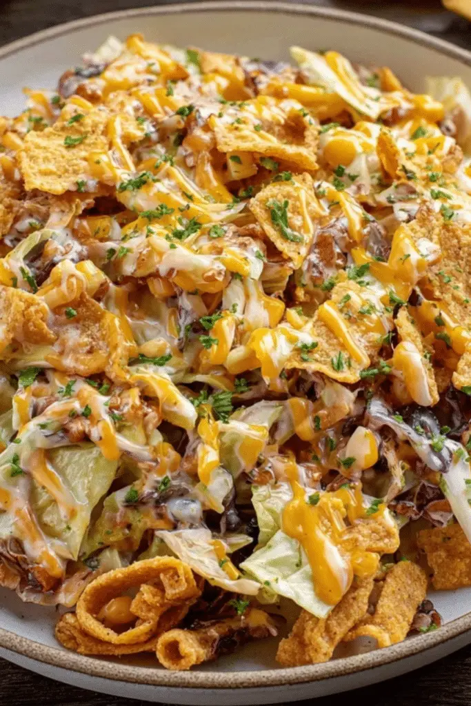 Frito Cowboy Cabbage isn’t just a dish — it’s a full-on experience. It blends nostalgic flavors with that satisfying crunch that hits all the right notes. Whether you’re feeding a family or hosting a weekend get-together, this crowd-pleaser checks every box: easy, hearty, budget-friendly, and unforgettable.