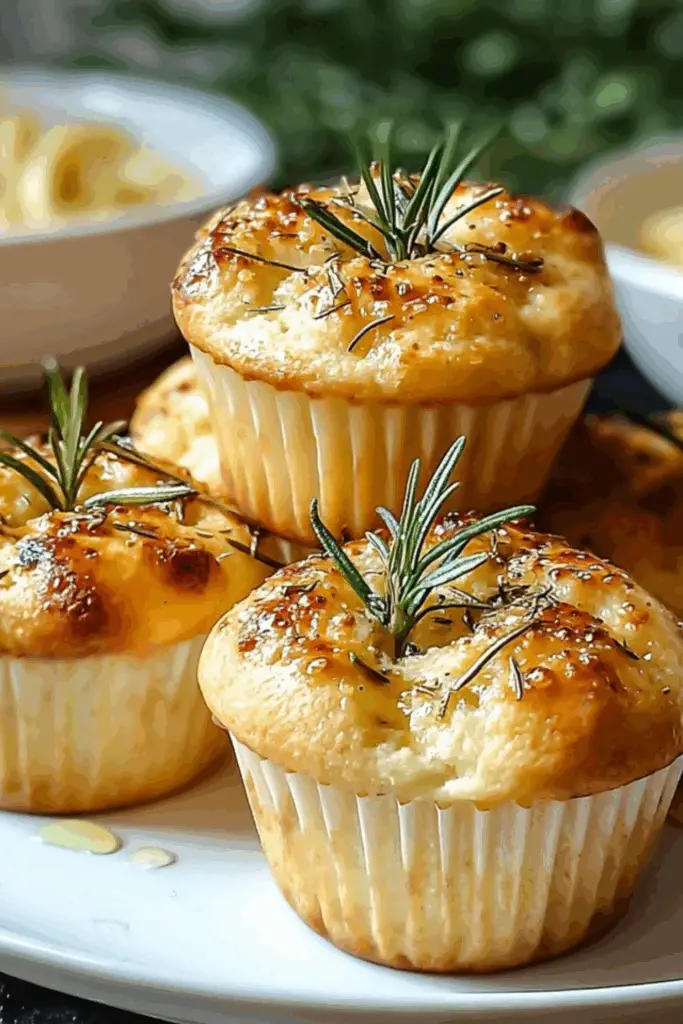 Start by proofing the yeast in warm water with a touch of sugar. Once it’s bubbly, mix it with flour, olive oil, salt, and minced garlic. Knead until smooth and let the dough rise until doubled. Divide it into muffin tins, brush with more olive oil, and top with rosemary sprigs. Bake until golden brown, and enjoy the irresistible aroma. If you love experimenting, pair these muffins with savory mains like Blueberry Protein Muffins for breakfast variety or serve them with creamy dishes like Low Carb Chicken Casserole.