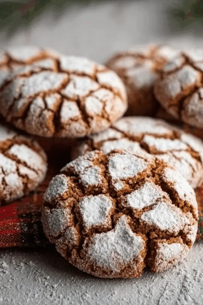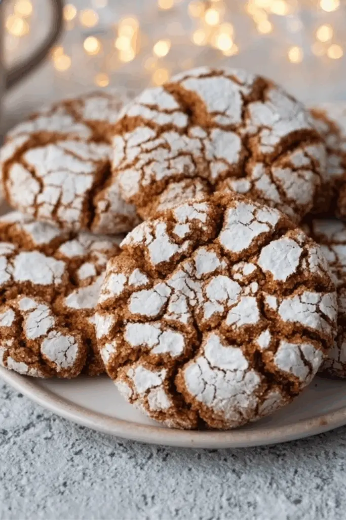 Soft, chewy, and beautifully crackled Gingerbread Crinkle Cookies that capture the essence of the holiday season. Perfectly spiced and dusted with powdered sugar for a festive finish.
