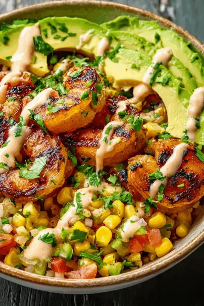 The Grilled Shrimp Bowl with Avocado, Corn Salsa & Creamy Sauce is more than just a recipe—it’s a fresh, flavor-packed experience that works year-round. Its combination of juicy shrimp, buttery avocado, zesty corn salsa, and smoky creamy sauce offers a perfect balance of textures and tastes. Whether you’re hosting friends, prepping a quick dinner, or simply craving a colorful, wholesome meal, this bowl delivers every time. With its easy preparation and room for customization, it’s no wonder it’s become one of my most-requested recipes.