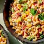 Not only is it easy to make, but it’s also versatile and brimming with vibrant ingredients like roasted corn, black beans, and bell peppers. Plus, the creamy dressing adds a tangy, slightly spicy kick that elevates this dish to a whole new level. Let’s dive in and break it down step by step so you can create a stunning Mexican Macaroni Salad, even if it’s your first time cooking.