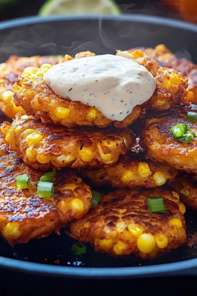 - Serve the fritters warm with the creamy sauce on the side or drizzled over the top. For extra flavor, garnish with additional chopped cilantro, crumbled cheese, and a sprinkle of chili powder.