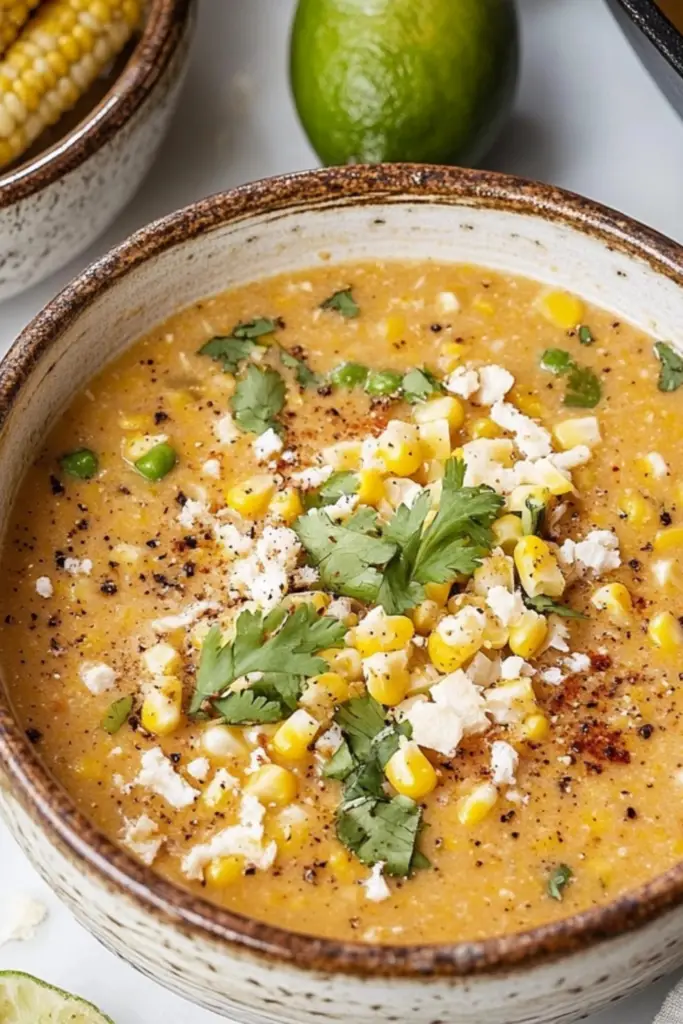🥣🌽 Transform the magic of Mexican Street Corn into a warm, creamy soup! Perfect for beginners, this recipe is loaded with bold flavors like chili, lime, and cotija cheese. 🌶️🧀 Whether you’re hosting friends or enjoying a cozy night in, this dish will quickly become your favorite go-to. Ready to savor every spoonful? 🍋✨ #StreetCornSoup #MexicanFlavors #BoldAndCreamy #SoupGoals #BeginnerCooking #FiestaInABowl #EasyAndDelicious #CornPerfection #LatinFoodLovers #ComfortFoodVibes 🌟🌮
