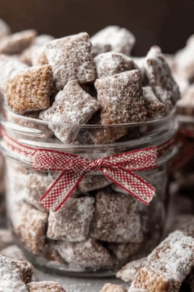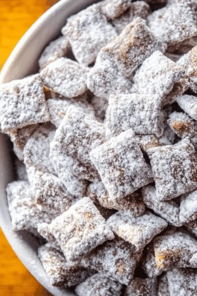 Don’t be afraid to double the sugar shake if you’re aiming for that snowy, irresistible look. And for those who want inspiration on texture, look at how it’s done in the Peanut Butter Puppy Chow and Chex Mix Poppy Chow.