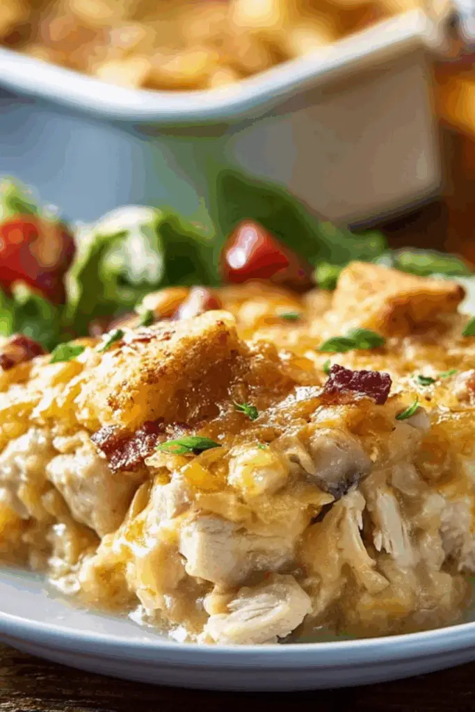 Neiman Marcus Chicken Casserole pairs wonderfully with simple greens or crusty bread. For something bolder, try serving it with air fryer buffalo chicken as a spicy side or a fresh slaw for a crisp contrast. It’s also a great dish to balance against the richness of buffalo chicken rangoons or a zesty corn casserole. Whether served hot from the oven or cooled slightly, it always satisfies.