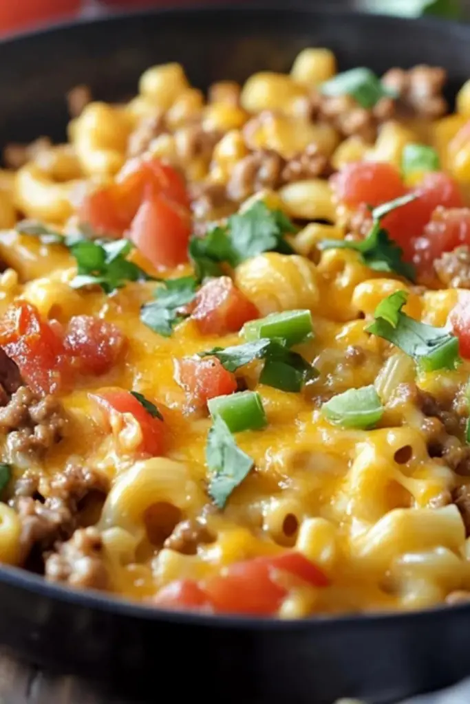This dish is the perfect balance of bold taco flavors and creamy mac and cheese, all cooked together in one pot for maximum convenience. For beginner cooks, it is a stress-free meal that requires minimal prep, simple ingredients, and straightforward steps. Plus, with its 30-minute cook time, it is an excellent choice for busy weeknights.