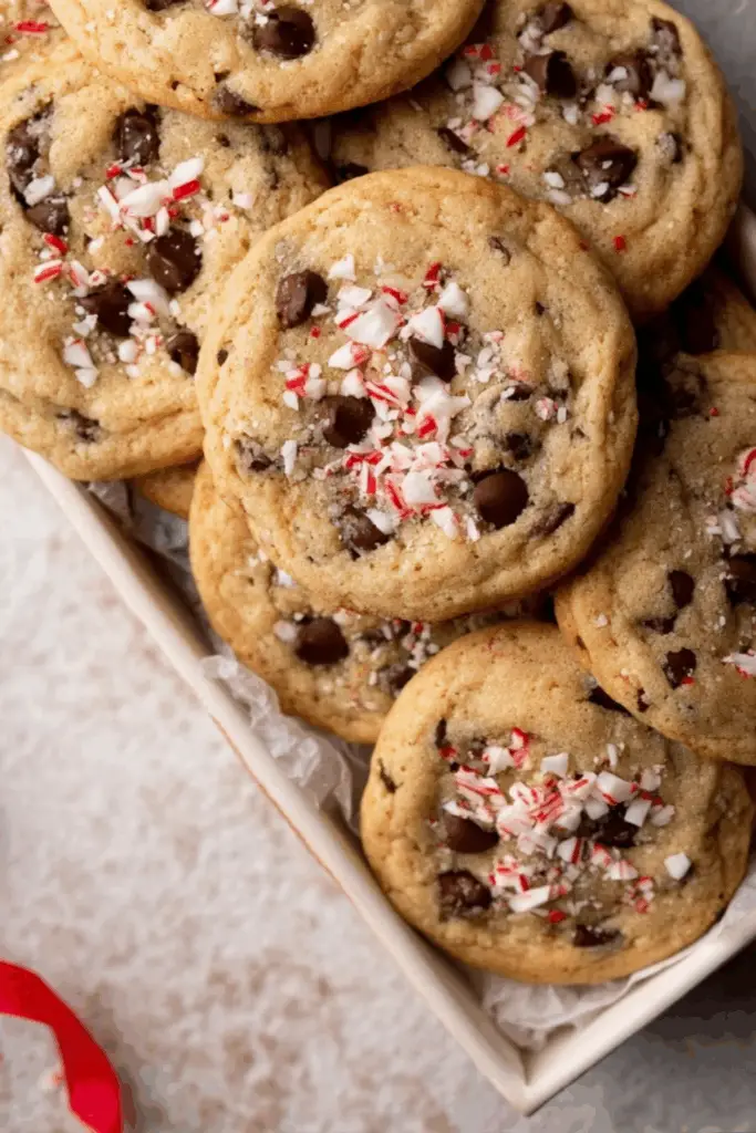 Dark chocolate chips are usually the go-to for these cookies, offering a contrast to the sugary dough and crushed peppermint bits. But milk chocolate or white chocolate also have their place. It’s all about creating the perfect bite — crisp peppermint on top, soft chewy center, and little pockets of melted chocolate.