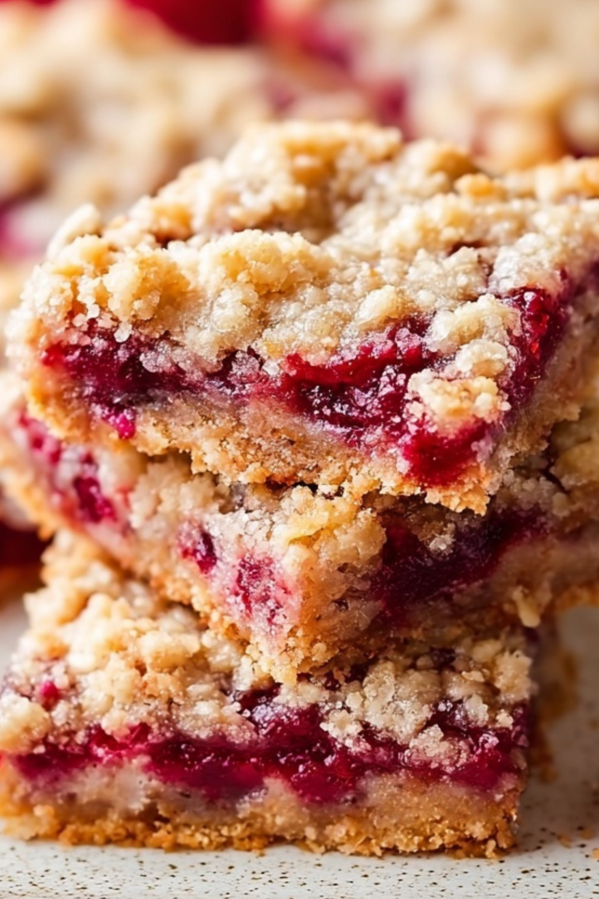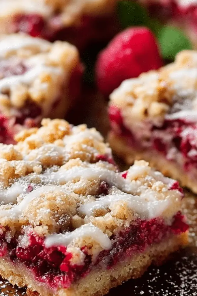 They’re very similar, but Raspberry Streusel Bars often feature a more buttery, shortbread-style base and a layered crumb topping. Crumb bars may use a more cake-like bottom and often have thicker toppings.