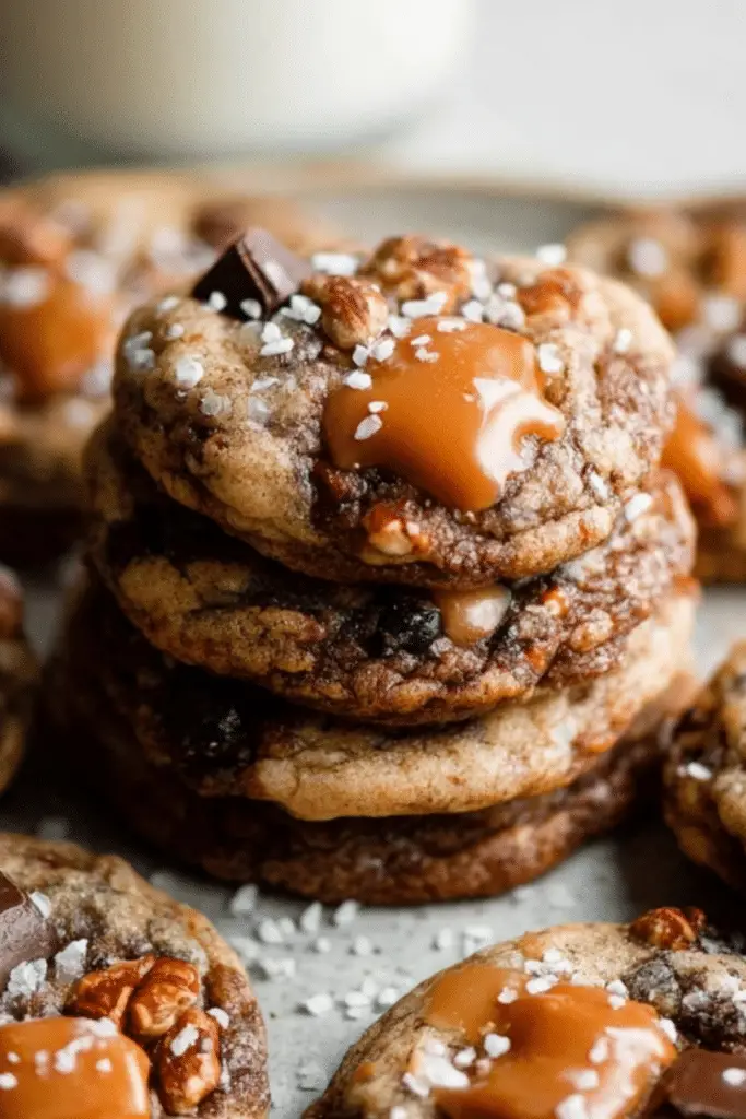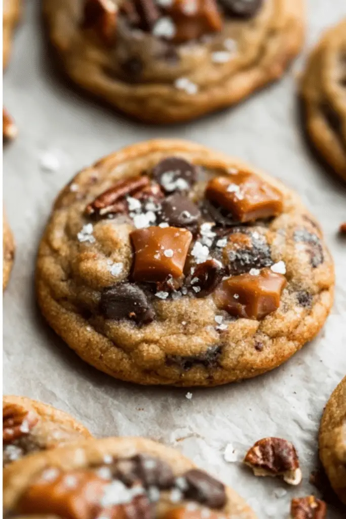 These Salted Caramel Pecan Chocolate Chip Cookies combine gooey caramel, toasted pecans, and rich chocolate chips in every chewy bite.