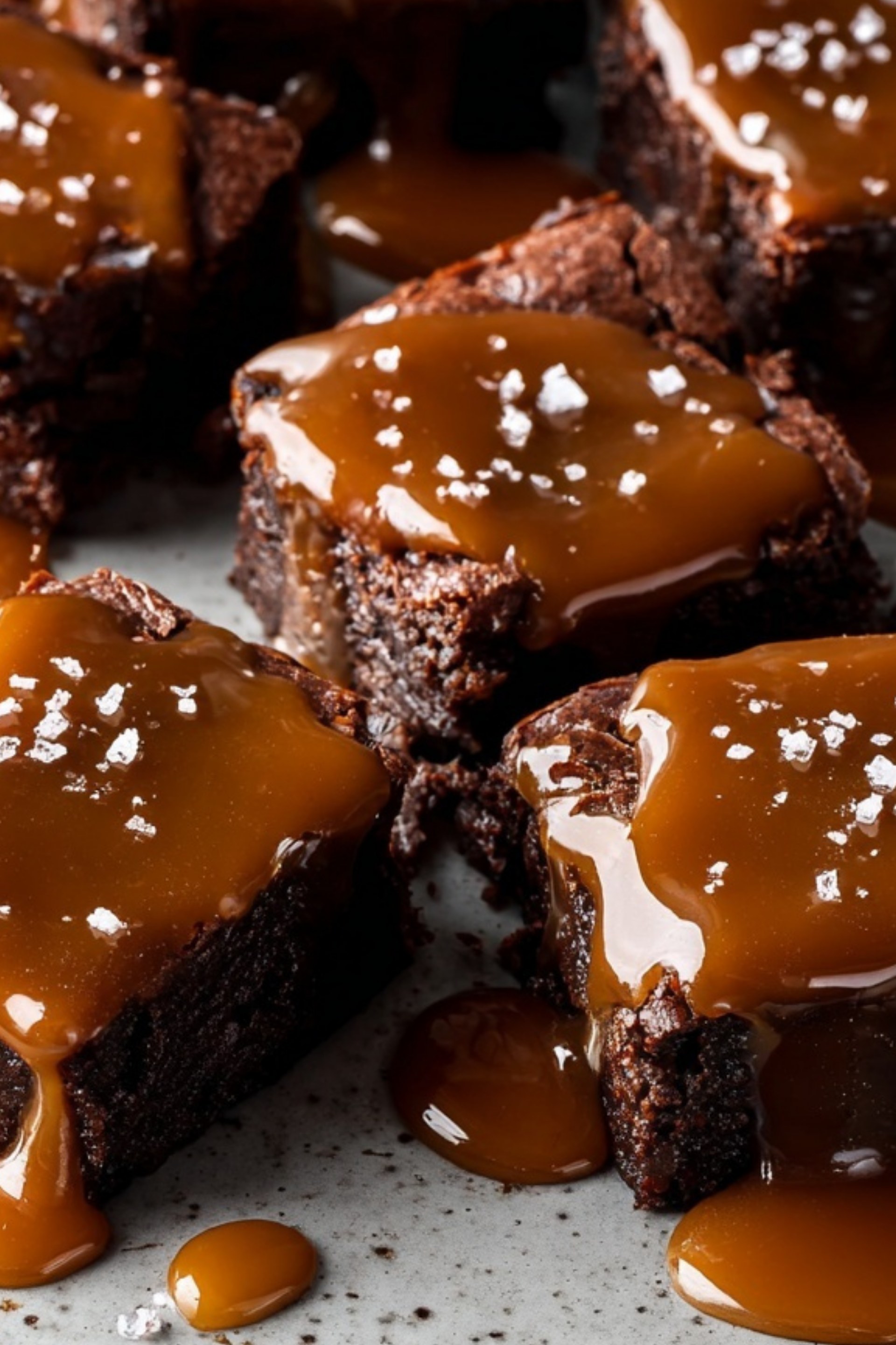 Salted Caramel Turtle Brownies are a rich, fudgy dessert layered with gooey caramel, crunchy pecans, and a sprinkle of sea salt.