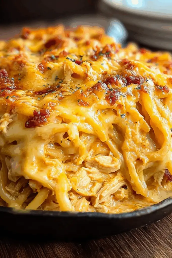 A creamy, cheesy, and spicy Southern comfort dish with chicken, spaghetti, and bold flavors baked to perfection.