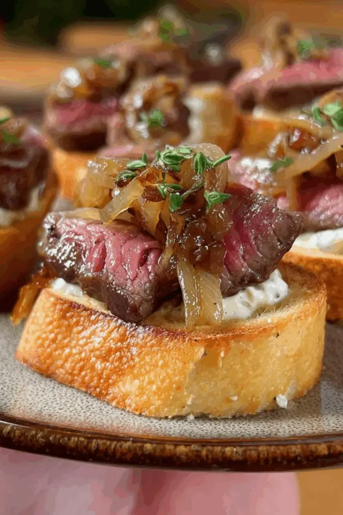 PrintSteak Crostini with Horseradish Sauce and Caramelized Onions: A Bold, Flavor-Packed Appetizer
