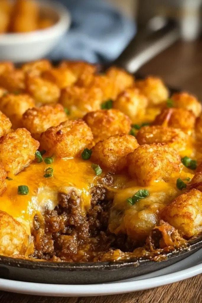 One of the reasons this casserole has remained so popular is how easy it is to prepare. You don’t need complicated steps—just brown the beef, mix in your creamy sauce and vegetables, then spread tater tots on top before baking. It’s a one-pan wonder that saves time and pleases even picky eaters. Pair it with something fresh, like Philly Cheesesteak Bowls for lunch or a light Mediterranean Chicken Zucchini Bake, and you’ll have balance between comfort and nutrition.