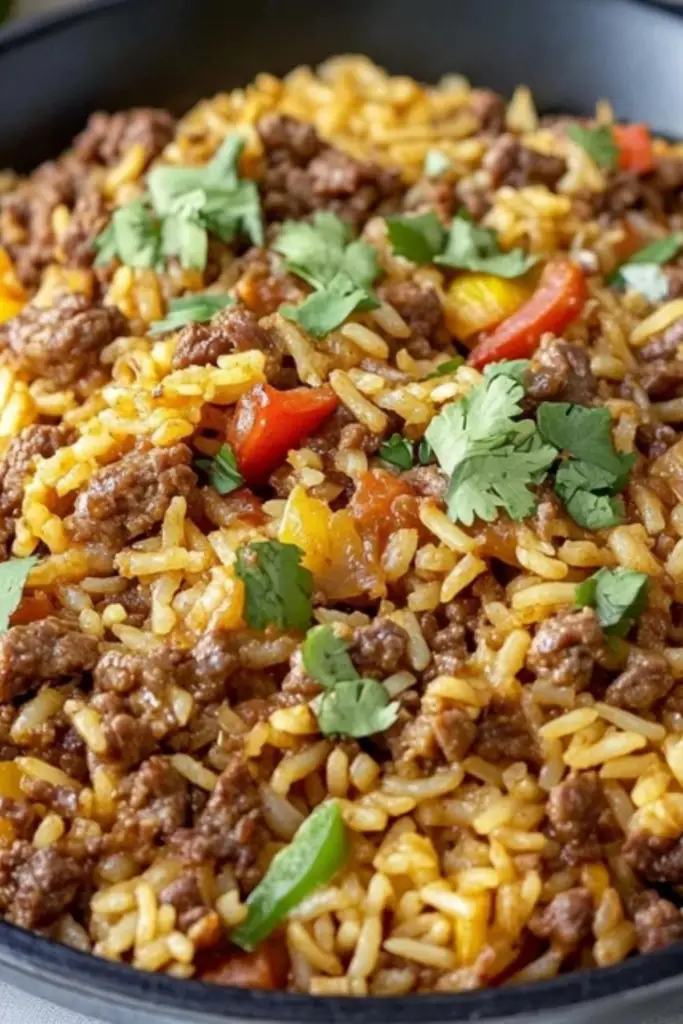#TexMexGoodness #BeefAndRice #OnePanWonder #EasyMeals #CheeseLover #SavoryAndDelicious #FoodieFavorites #QuickDinnerFix #ComfortFoodCravings #CookingForBeginners