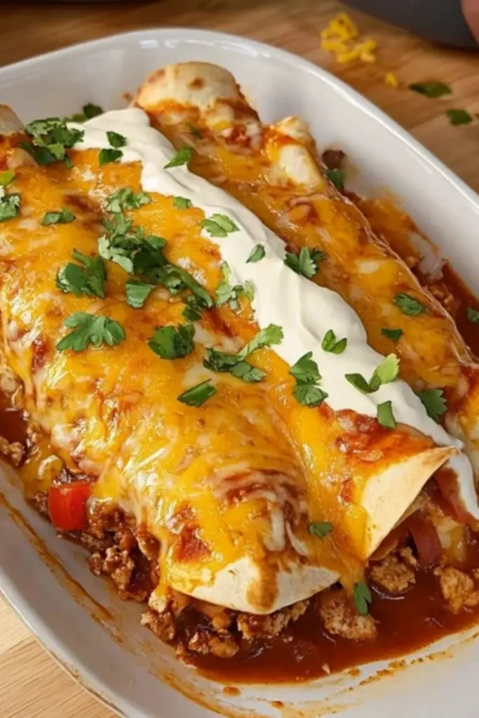 I first made these baked burritos on a busy weekday when I needed a quick and filling dinner. To my surprise, they were gone in minutes, and my family immediately requested that I make them again. What makes this recipe truly special is how effortless it is to put together while still delivering restaurant-quality flavors. The combination of seasoned beef, gooey melted cheese, and a rich enchilada sauce wrapped in warm tortillas creates a dish that’s both hearty and delicious.