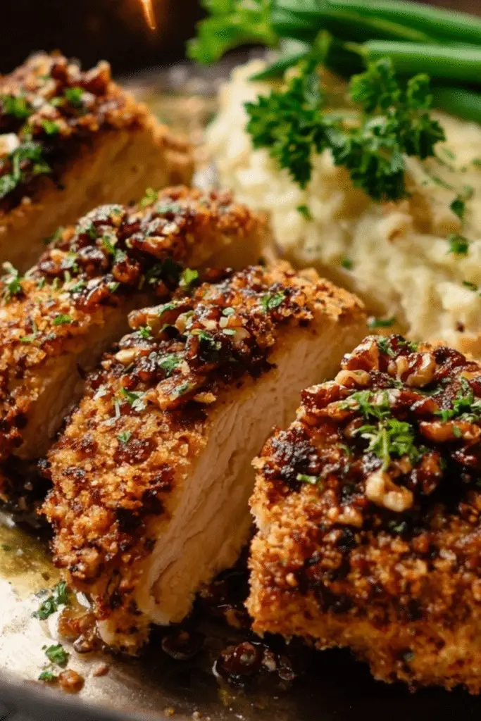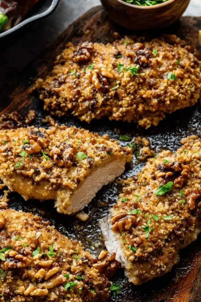 Let the chicken rest for 5 minutes before slicing. This allows juices to redistribute, keeping your Walnut-Crusted Chicken juicy and delicious. Pairing it with creamy sides like marry me chicken or a colorful veggie dish helps round out the meal.